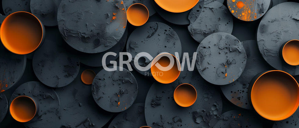 Keywords: abstracto, composición, círculos, líneas, cuencos, gris ceniza, naranja, abstract, composition, circles, lines, bowls, ash grey, orange.