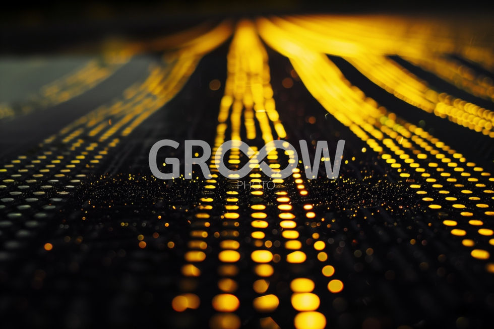 Keywords: abstracto, rayos de luz, amarillos sobre negro, letreros luminosos, carretera mojada, abstract, light rays, yellow on black, illuminated signs, wet road.