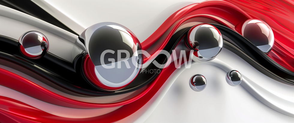 Keywords: abstracto, pliegues en cascada, esferas, metálicas, rojo, gris, blanco, negro, reflejos brillantes, abstract, cascading folds, spheres, metallic, red, grey, white, black, shiny reflections.